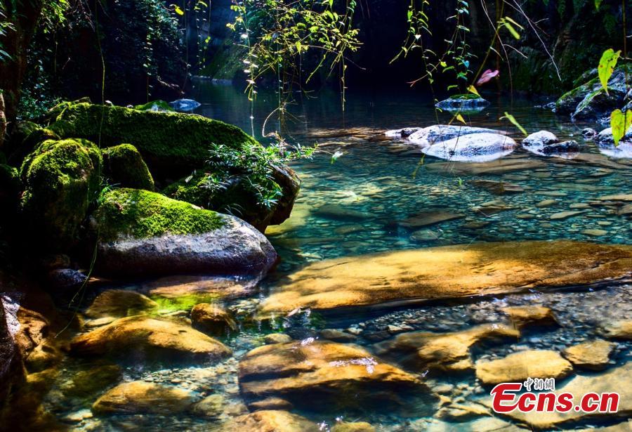 A view of the Changyang Qingjiang National Geopark in Changyang Tujia Autonomous County, Central China's Hubei Province, April 25, 2018. Located along the Qingjiang River, a tributary of China's longest river the Yangtze, the 354.04-square-kilometer geopark is comprised of two parks boasting natural landscapes that include rivers, gorges, and karst landforms, as well as attractions of historical interest. The geopark officially opened on Wednesday. (Photo: China News Service/Wang Shuangyue).