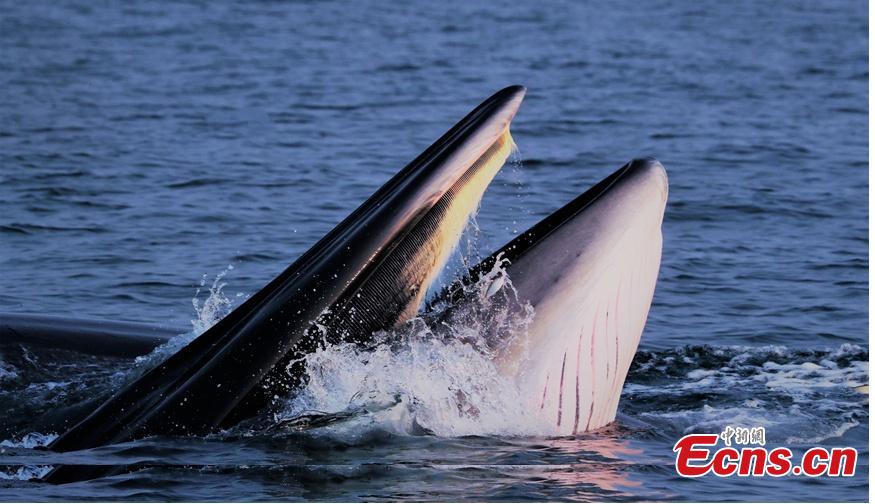Scientists have confirmed that a pod of large whales spotted off Weizhou Island in the Beibu Gulf in south China's Guangxi Zhuang Autonomous Region is the first to be found living inshore near the Chinese mainland, according to a press conference held by the city government of Beihai after a month-long joint survey at sea. Since March, residents and tourists on Weizhou Island have seen whales on multiple occasions. The whales have since been identified as a pod of Bryde's whales, with the largest 12 meters long. (Photo: China News Service/Chen Bingyao)