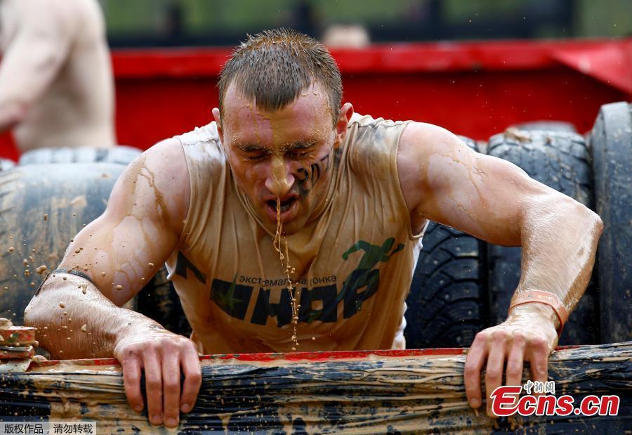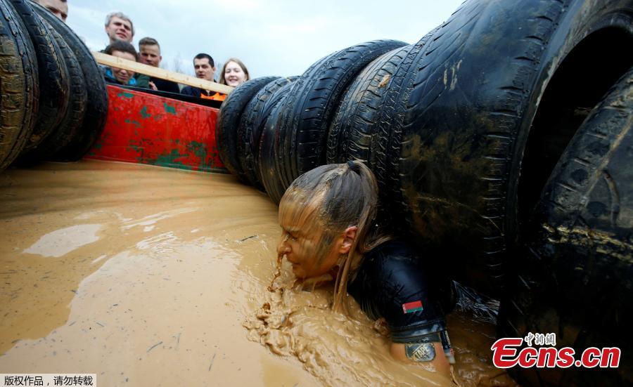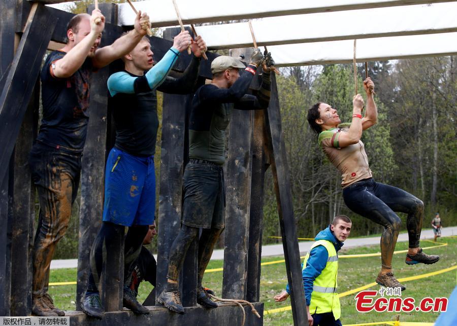 People take part in a "Bison race" competition with different kind of obstacles in a field near the town of Lahoysk, Belarus, April 29, 2018. (Photo/Agencies)