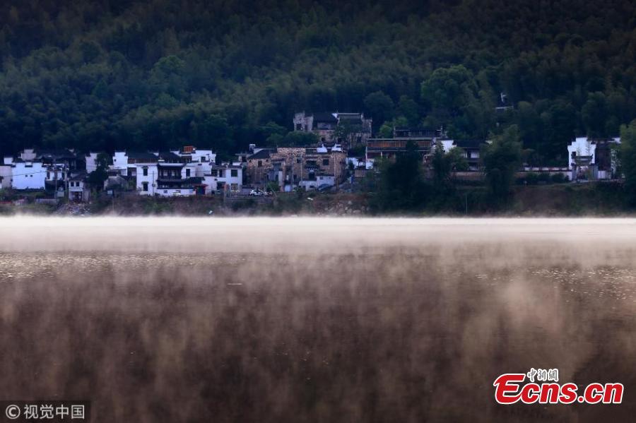 Mist drifts over Qishu Lake in Huangshan City in Anhui Province, May 4, 2018. Surrounded by mountains, the lake is located two kilometers east of Hongcun Village, a UNESCO heritage site, and it is a tourist attraction known for its beautiful natural landscape. (Photo/VCG)