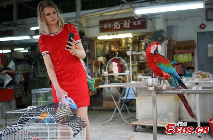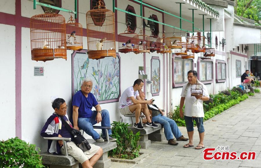 Photo taken on May 4, 2018 shows Yuen Po Street Bird Garden in Mong Kok reopened after it's temporarily closed to the public for 21 days on April 13 following the detection of the H5N6 avian influenza virus in an environmental sample collected from a bird cage holding a hill myna at a pet bird shop. Yuen Po Bird Garden offers a glimpse of the traditional culture of songbird keeping in the surroundings of a traditional Chinese garden. (Photo: China News Service/Zhang Wei)