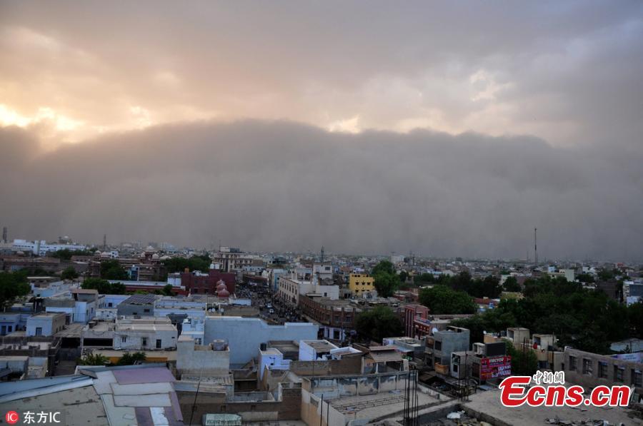 Photo taken on May 7, 2018 shows a massive sandstorm engulfed Bikaner in Rajasthan, India, reducing on-road and air visibility to almost zero and forcing locals to take cover inside buildings. (Photo/IC)
