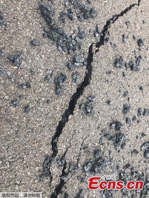 A damaged road in the 'lava zone' is seen May 9, 2018 in Leilani Estates on Big Island in Hawaii. There is a growing chance of explosive eruptions of Hawaii's Kilauea volcano in coming weeks that could shoot rocks for miles and cause ashfall for dozens of miles, the U.S. Geological Survey said on Wednesday. (Photo/Agencies)