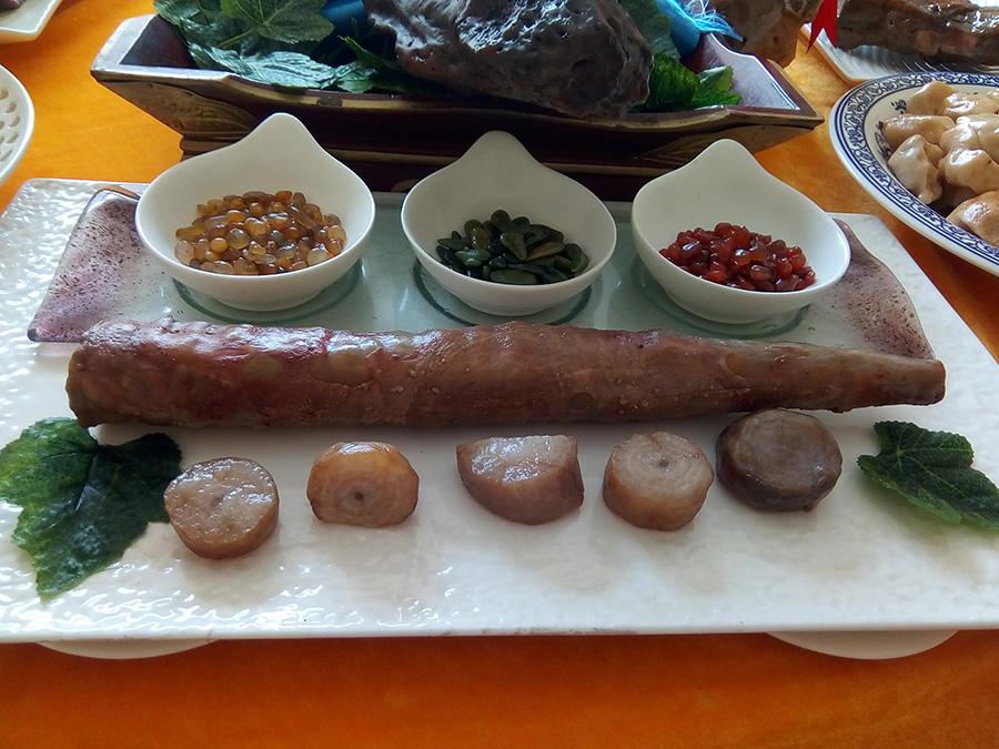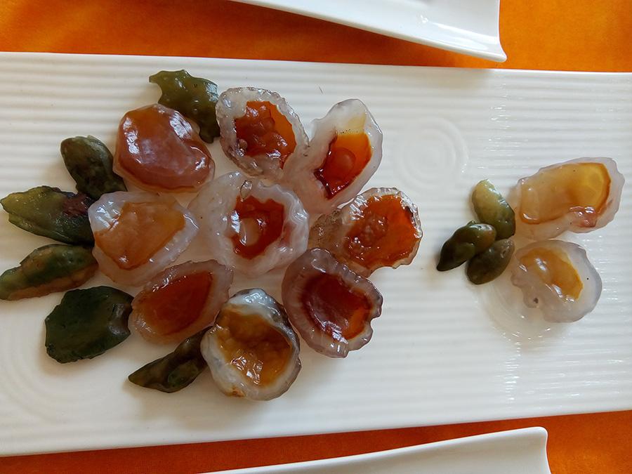 A shepherd made a table of 108 "dishes" using various stones, such as agate and boulder. He collected the stones in Alashan, North China's Inner Mongolia autonomous region. (Photo by Bagana/for chinadaily.com.cn)