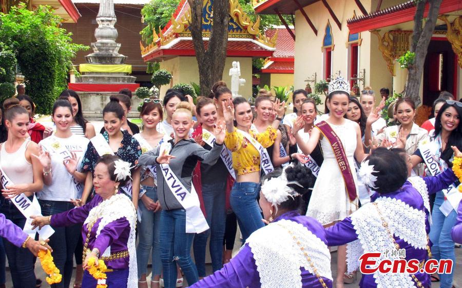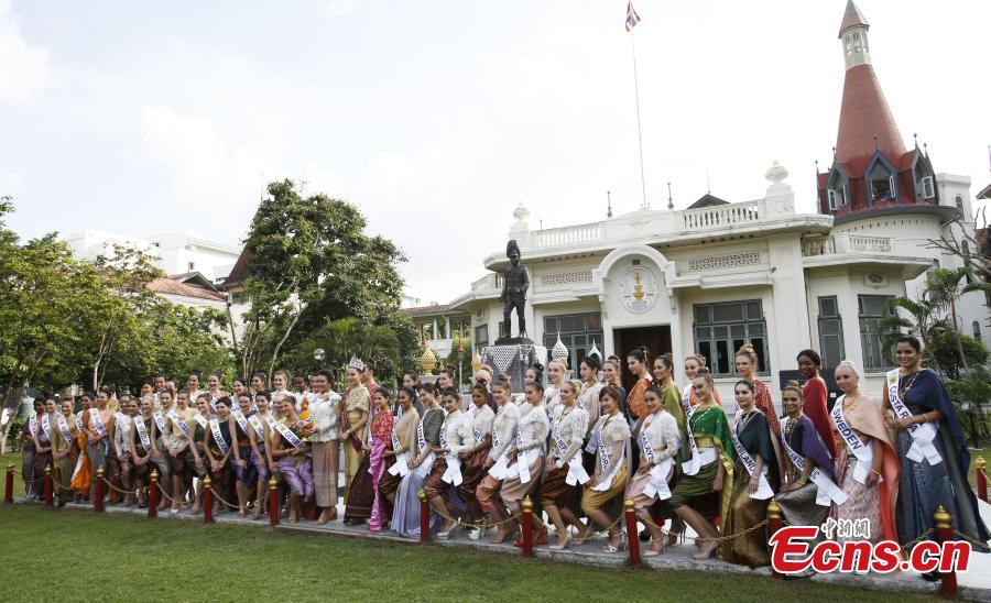 Contestants for Miss Tourism Queen International 2018 gather for the final in Bangkok, Thailand, May 10, 2018. The competitors were from 55 countries and regions. (Photo: China News Service/Qian Xingqiang)