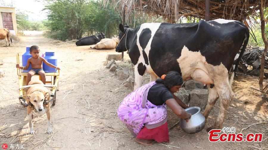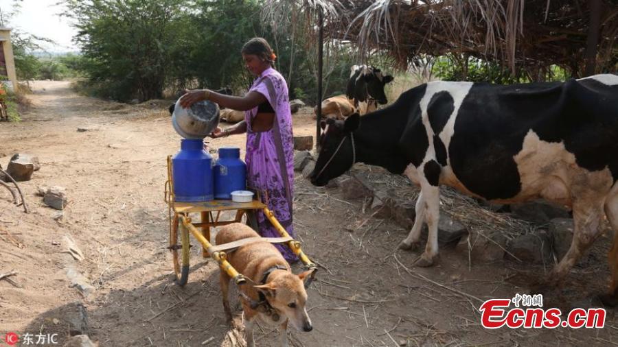 Adorable pooch delivers milk on special cart in India(1/3)