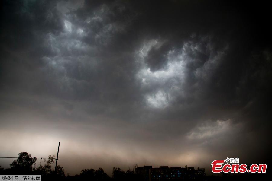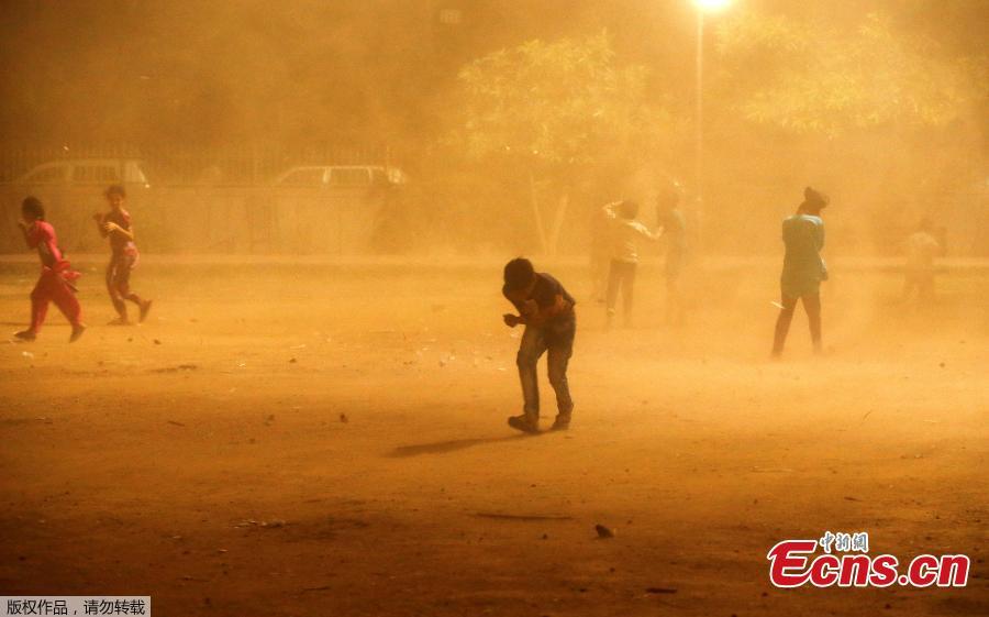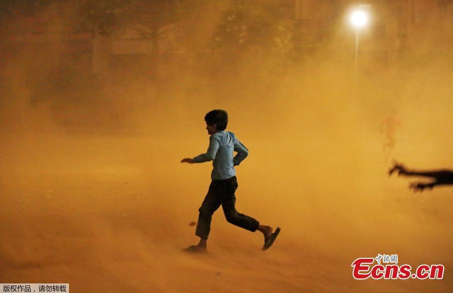 A boy runs for cover during a dust storm in New Delhi, India, May 13, 2018. (Photo/Agencies)
