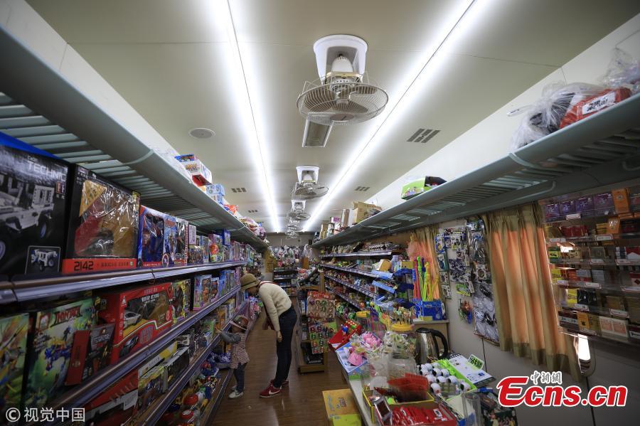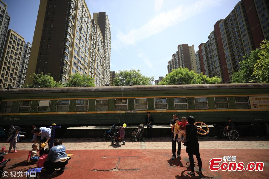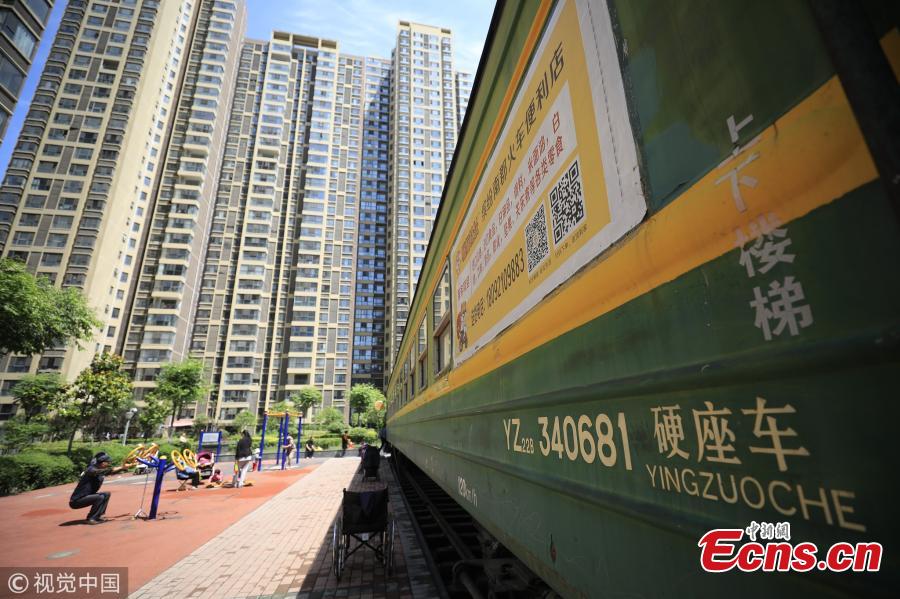 An old train carriage-turned supermarket is seen at a community in Xi’an City, capital of Northwest China’s Shaanxi Province, May 11, 2018. A real estate developer purchased the 24.5-meter-long, 2.2-meter-wide train carriage for 310,000 yuan ($48,000) in 2013 and then transformed it into a supermarket, which has itself become an attraction. (Photo/VCG)