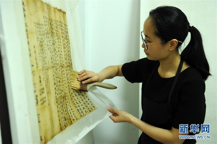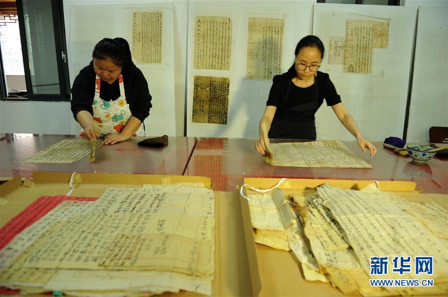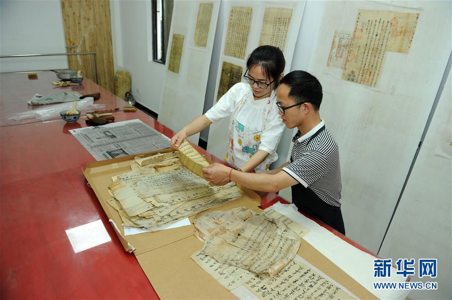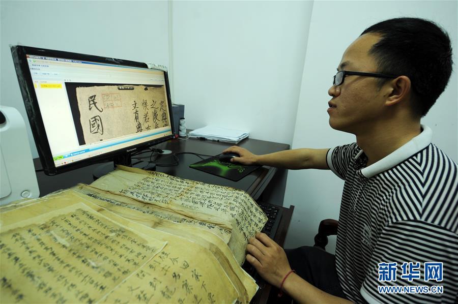 A staff member works on the Jinping Records in Jinping County, Southwest China’s Guizhou Province, May 11, 2018. The Jinping Records are historical literature about Miao and Dong people who lived in Jinping County and along the middle and lower reaches of Qingshui River from the time of Emperor Jiajing in the Ming Dynasty (1368-1644) to the Republic of China (1912-1949). The literature is one of China’s best-preserved, systematic folk files. Some young people born in 1990s have joined in preservation and restoration of Jinping Records since 2016. The county has collected more than 60,000 items for the records. (Photo/Xinhua)