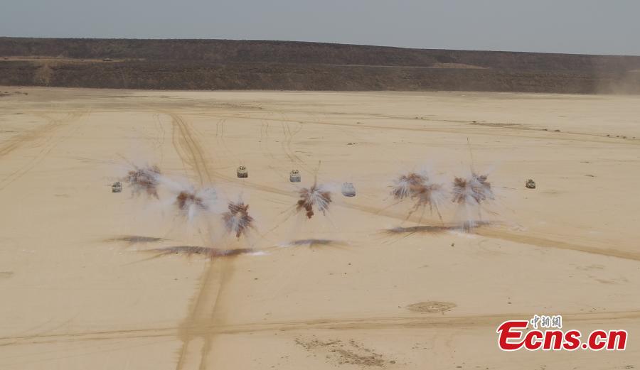 The Djibouti Logistics Support Base of the People's Liberation Army conducted a live-fire exercise at high temperature on May 12 to enhance their counter-terrorism capability, Chinanews.com reported on Monday. The exercise started at 8 a.m. at a local shooting range in 40 degree plus heat, with a total of 15 programs as well as how to use various weapons in precision strikes. The program was intended to improve the combat capability of troops in regards to dealing with emergencies when in battle with terrorists. It's another drill in hot season, and raised the capability of battle command, coordinated communication, logistic and equipment support. (Photo: China News Service/Zhang Pingbao)
