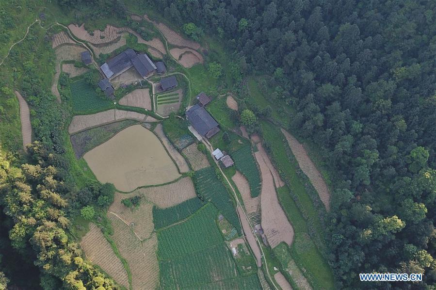 Aerial photo taken on May 15, 2018 shows scenery of Kuankuoshui National Nature Reserve in Suiyang County, southwest China's Guizhou Province. (Xinhua/Ou Dongqu)