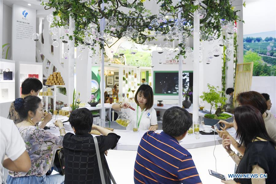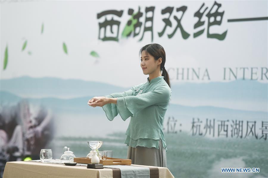 A tea specialist demonstrates tea art during the 2nd China International Tea Expo in Hangzhou, capital of east China's Zhejiang Province, May 18, 2018. The expo kicked off on Friday. (Xinhua/Huang Zongzhi)