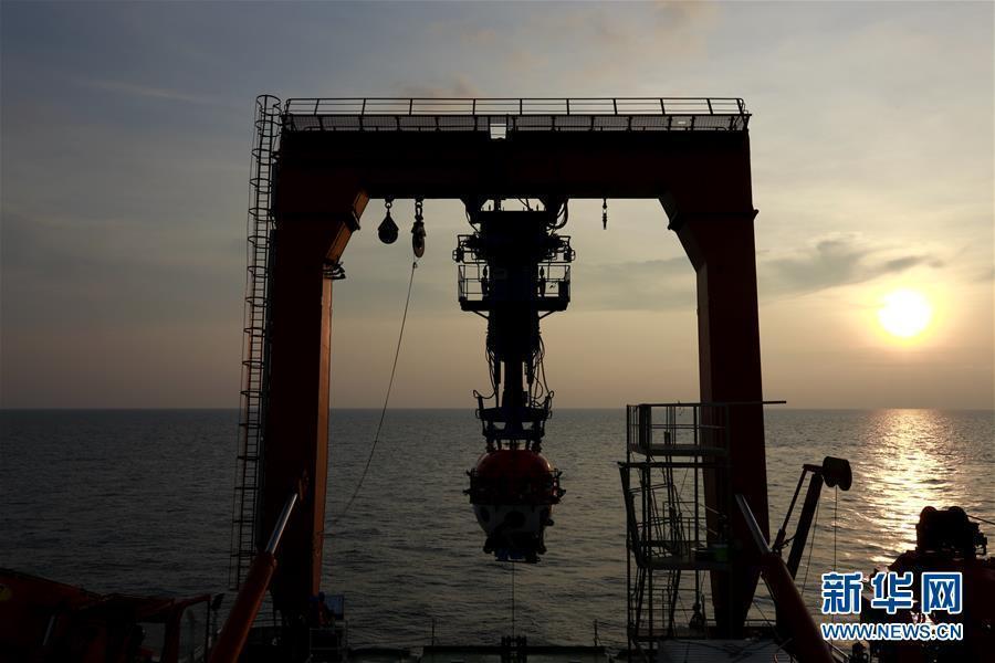 China's manned submersible Shenhai Yongshi (Deep Sea Warrior) is loaded on board its mother ship Tansuo-1 after carrying out a deep-sea mission near the Xisha Islands in South China Sea, May 20, 2018. The manned submersible reached a depth of about 1,400 meters in the mission. (Photo/Xinhua)