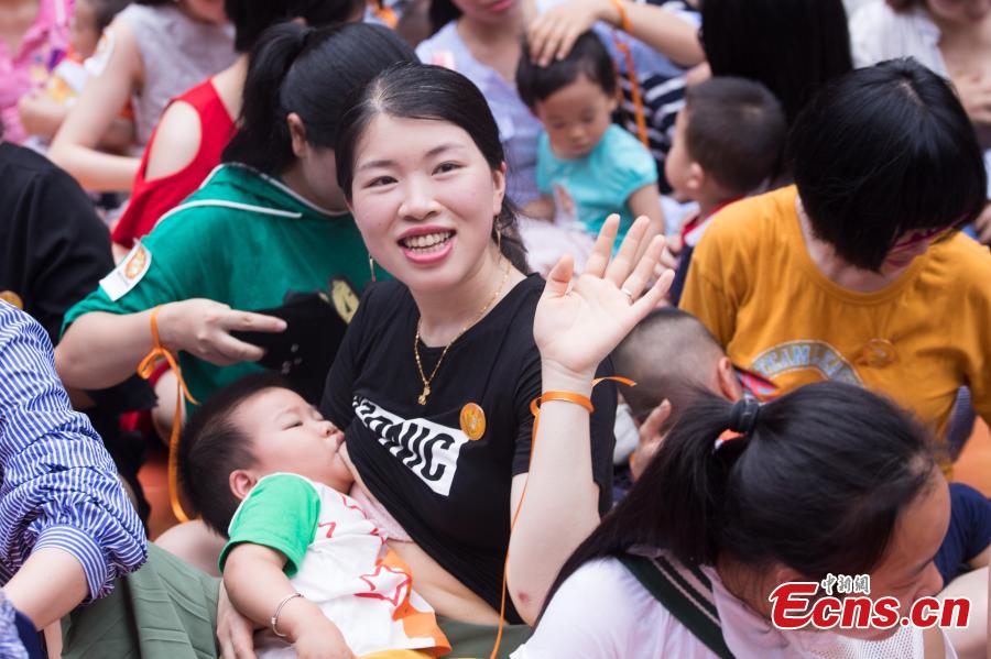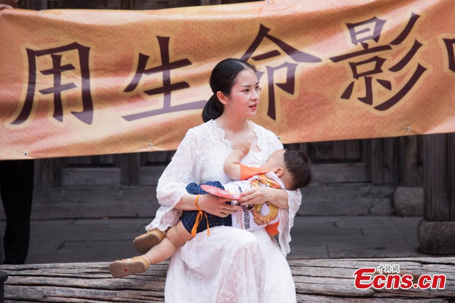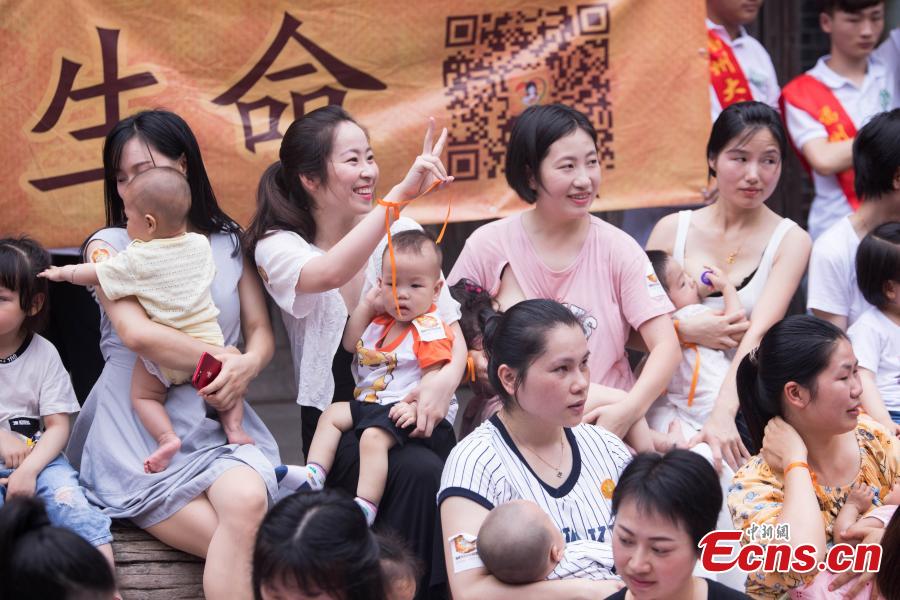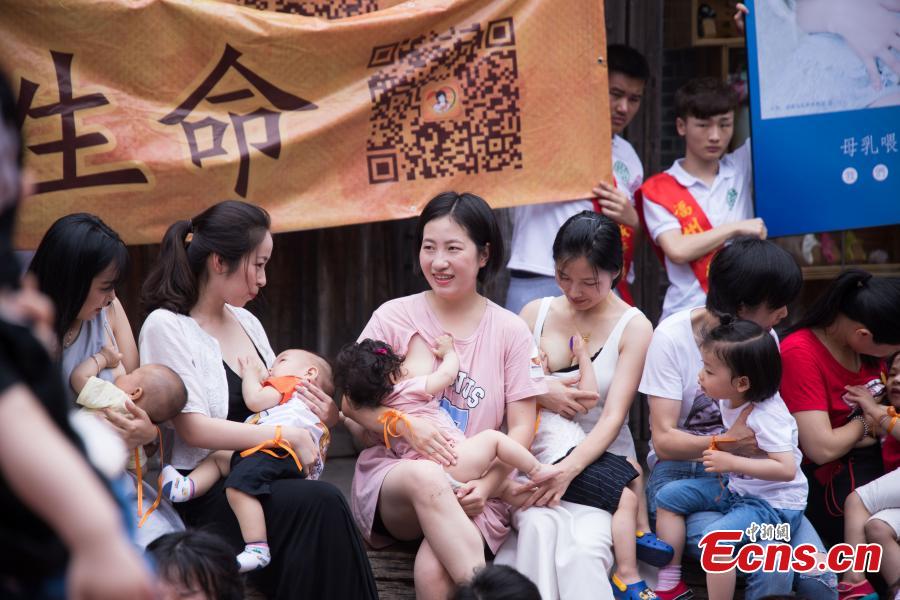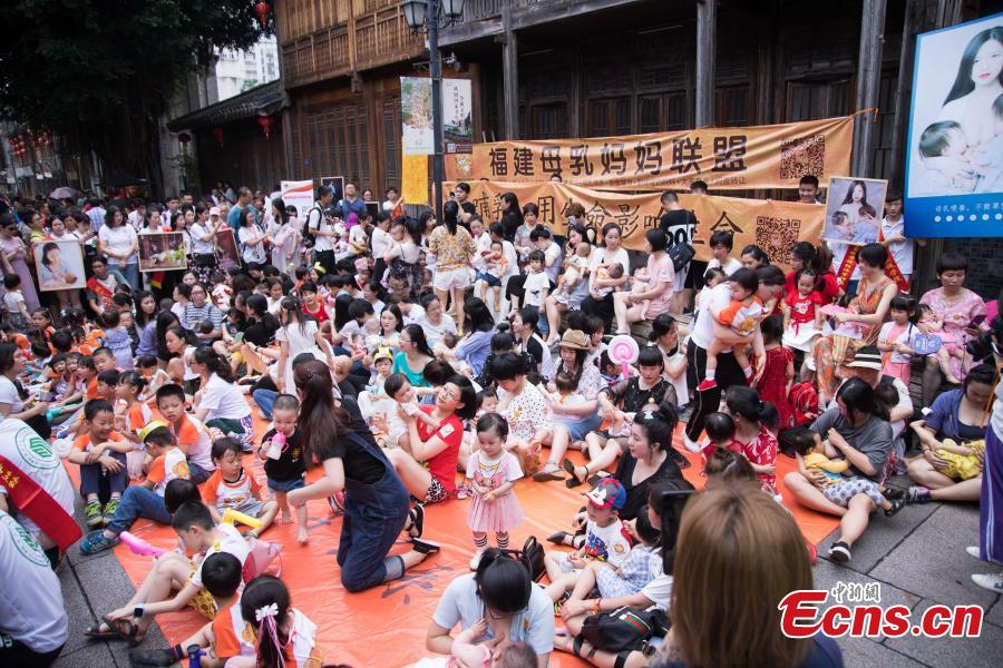 Mothers breastfeed their children in an event to promote breastfeeding at Sanfang Qixiang, literally Three Lanes and Seven Alleys, a historic and cultural area in Fuzhou City, East China’s Fujian Province, May 20, 2018. Hundreds of mothers attended the activity organized by an organization on Sunday, the National Breastfeeding Awareness Day. (Photo: China News Service/Li Nanxuan)