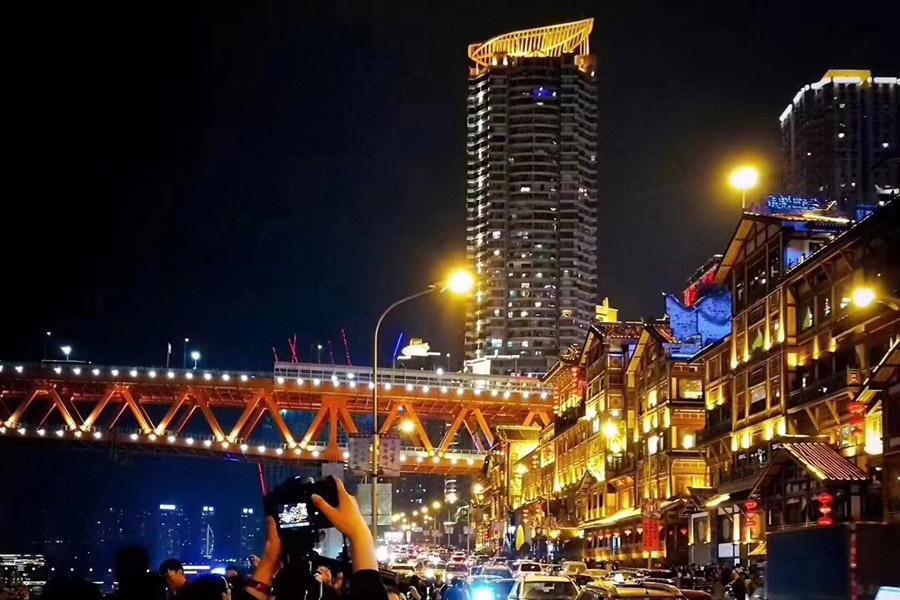Cars seem to race across a bridge in this night view of Southwest China's Chongqing municipality. After a thunderstorm last week, Chongqing, a mega city by the Yangtze River, looks glittering at night. The city of mountains and rivers, which boasts beautiful night views and unique landscape, recently become a hot travel destination in China. (Photo provided to chinadaily.com.cn)