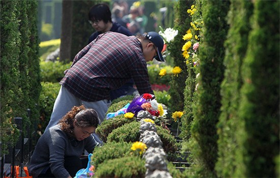 Mourners offer flowers at a cemetery in Shanghai. (Photo/Xinhua)
