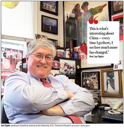 For Jon Taylor, a professor of political science at the University of St. Thomas in Houston, doing research on modern China goes well beyond intellectual and academic interests - he embraces and enjoys China's culture on a variety of levels.