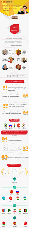 - Xi will attend the 7th BRICS summit on July 8-9 and the 15th meeting of the SCO on July 9-10 in Ufa, Russia.