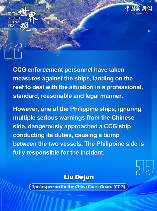 An official Philippine vessel deliberately rammed into a Chinese coast guard (CCG) ship near Huangyan Dao in the South China Sea on Tuesday morning, said a CCG spokesperson.