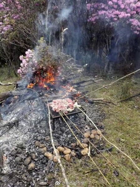 Azaleas are popular in Chinese culture and known as "the flower for the guest" in Liangshan. The local tourism bureau has organized people to stop tourists from damaging the environment, noting that local azaleas grow on mountains at 2,800 meters above sea level and that the plants can barely survive at lower altitudes.