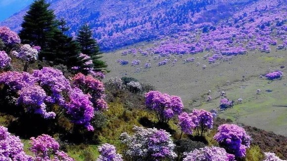 Beautiful azalea blossoms are seen in southwestern Liangshan Yi Autonomous Prefecture in Sichuan Province. (Photo/CGTN)