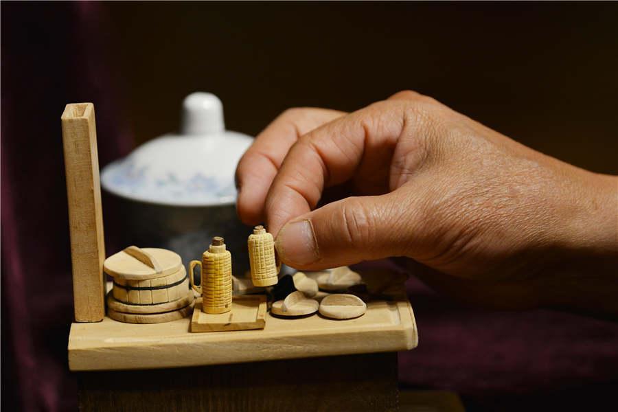 Every morning the first place he goes to is his workshop. At first he made some small wooden spoons and scoops, and then created miniature wooden farm tools and utensils. Later, Chen turned his focus to fast disappearing professions. He said that he wants to preserve the old memories as many old professions are disappearing.