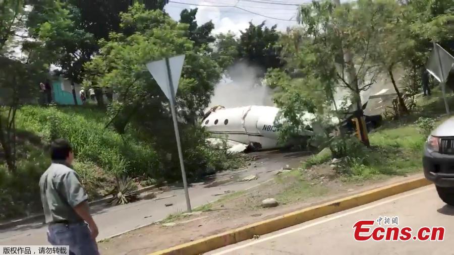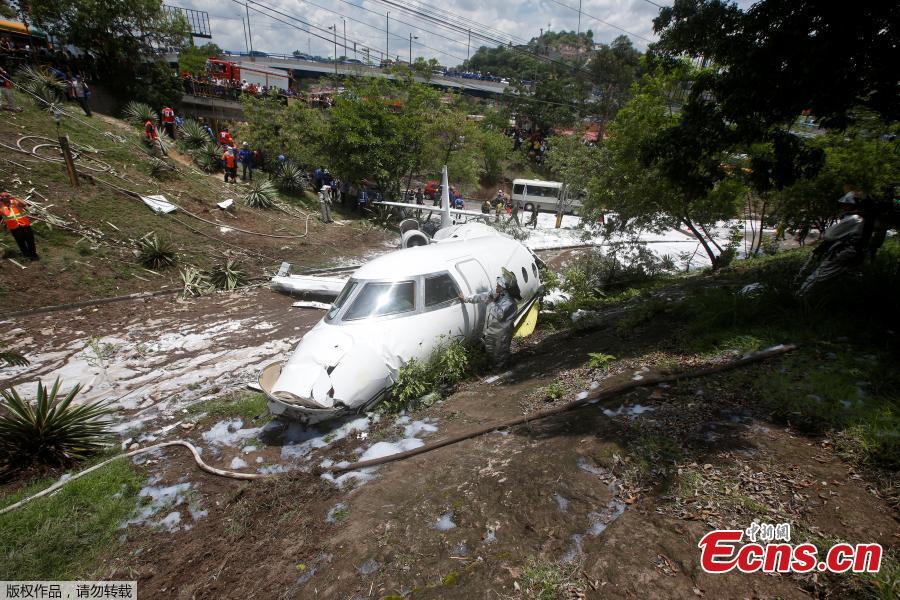 A Gulfstream G200 aircraft is seen after it skidded off the runway during landing at Toncontin International Airport in Tegucigalpa, Honduras, May 22, 2018. At least six passengers were injured. (Photo/Agencies)