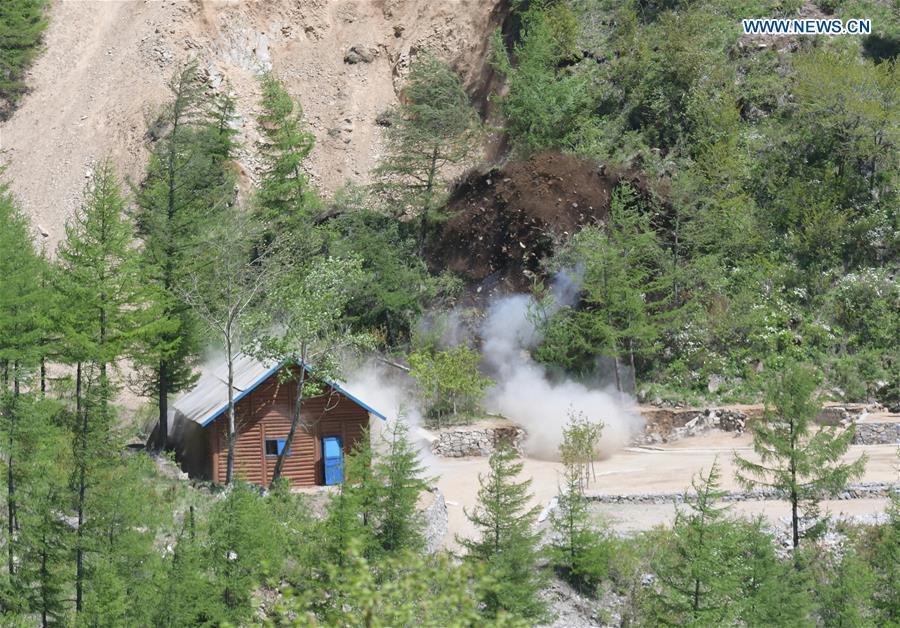 The No. 2 tunnel is seen after explosions at the nuclear test site of Punggye-ri, the Democratic People's Republic of Korea, on May 24, 2018. The Democratic People's Republic of Korea has confirmed the demolition of its nuclear test site at Punggye-ri on Thursday, saying that all the tunnels have been collapsed by explosions and their entrances completely closed, according to the Korean Central News Agency (KCNA). (Xinhua/Cheng Dayu)