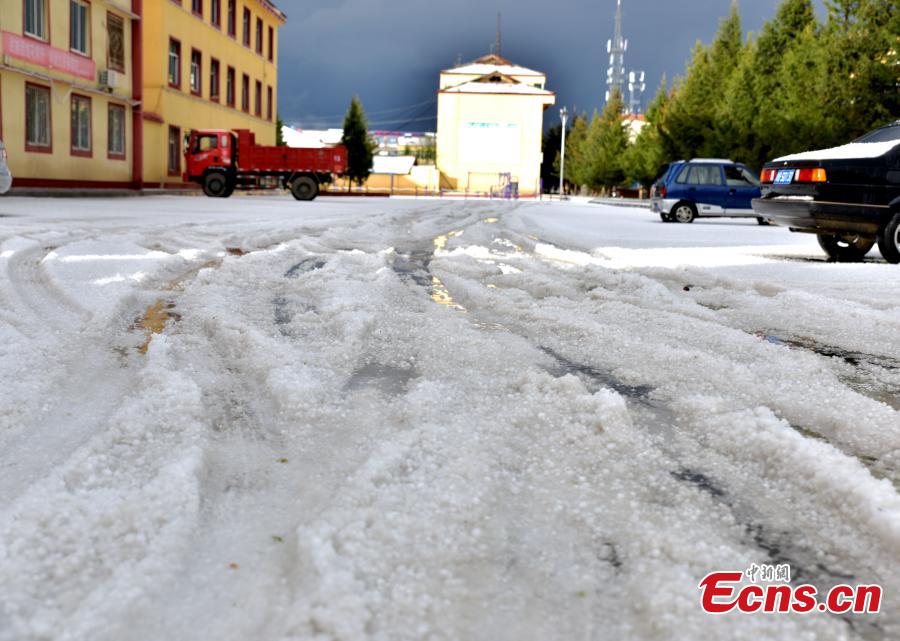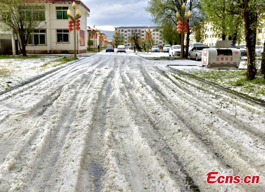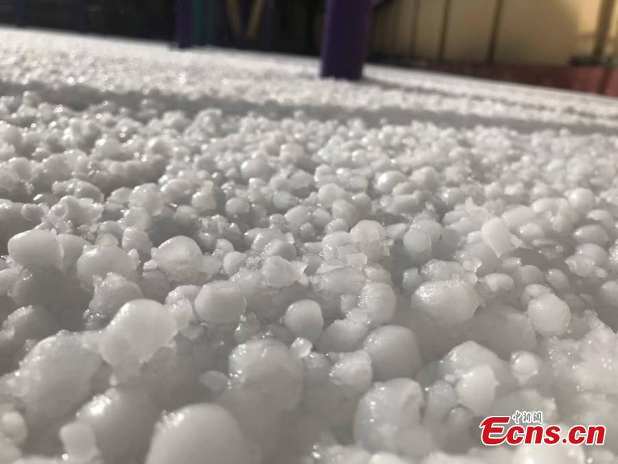 Photo take on May 24, 2018 shows hailstones hitting Hongyuan County, Southwest China’s Sichuan Province. The hail storm continued for 13 minutes, with the largest hailstone measuring 1.5 centimeters. There's been no reports of injuries or deaths. (Photo: China News Service/Tang Mingbo)
