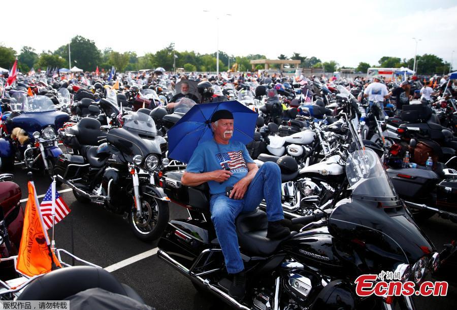 Participants gather in the parking lot of the Pentagon as thousands of military veterans and their supporters participate in the 31st annual Rolling Thunder motorcycle rally and Memorial Day weekend "Ride for Freedom" motorcycle procession in Washington, U.S., May 27, 2018. (Photo/Agencies)