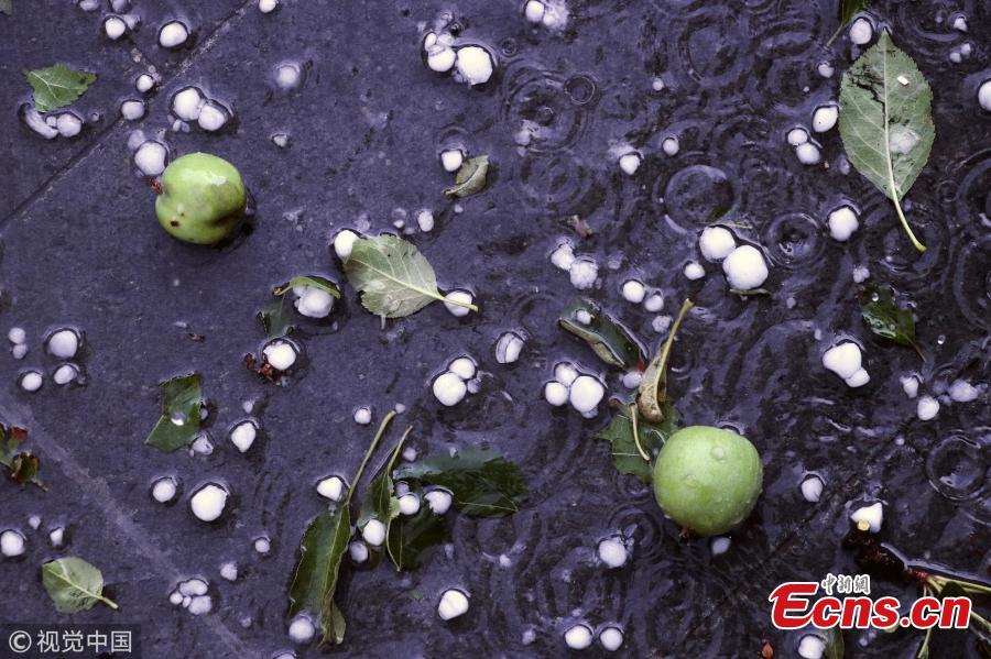 Cherries are seen on the ground due to heavy hail in Ankara, Turkey, May 28, 2018. (Photo/Agencies)