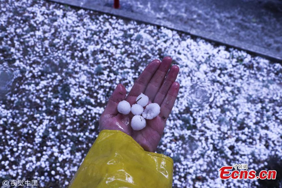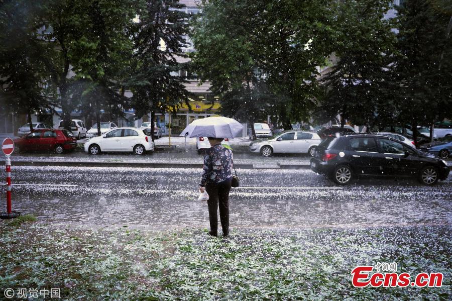 Heavy hail hits Ankara, Turkey, May 28, 2018. (Photo/Agencies)
