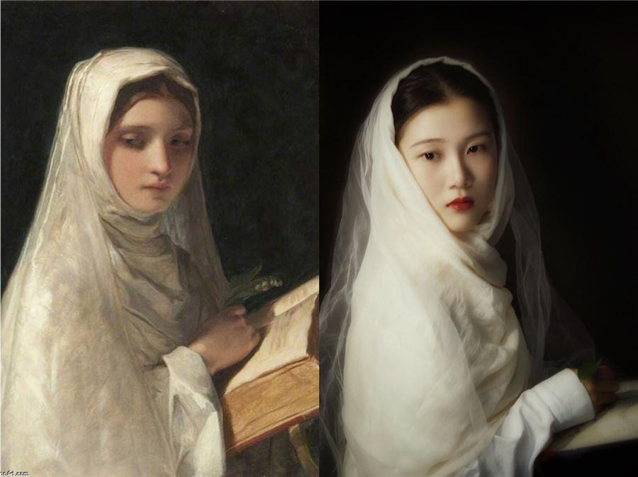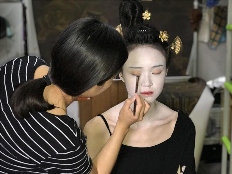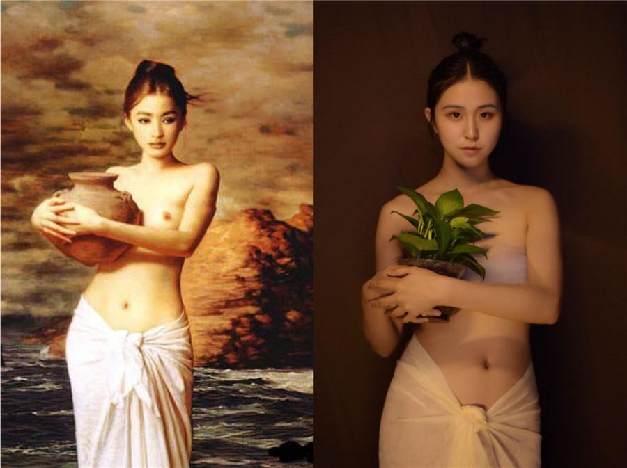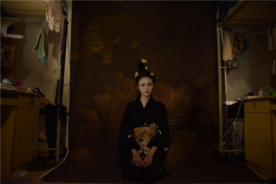 Students from Yunnan University Dianchi College spent two days creating look of a geisha and famous paintings. The artists used no professional lighting or any special effects. (Photo by Zhu Yuhang and Xu Yuya/chinadaily.com.cn)
