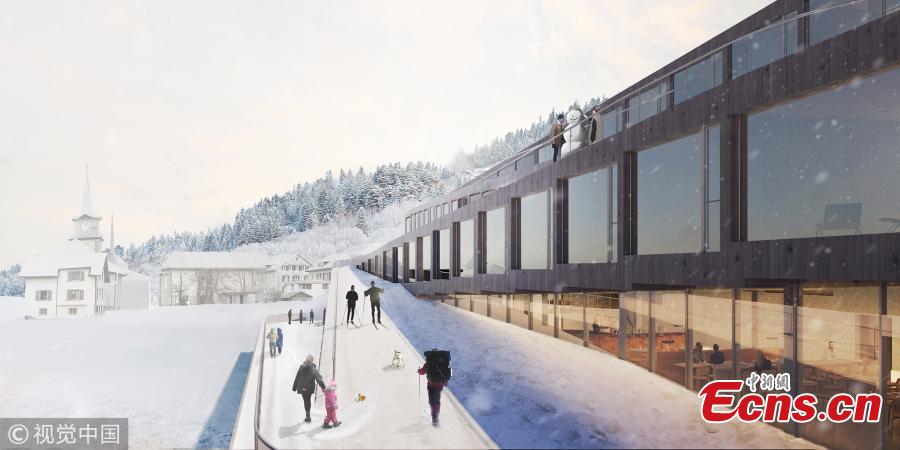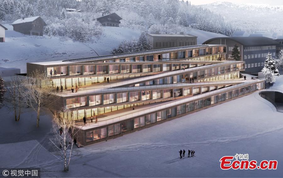 BIG-Bjarke Ingels Group has unveiled images of their proposed Audemars Piguet Hotel des Horlogers, a ski hotel set in the scenic Vallée de Joux, Switzerland. The 70,000 square foot (6,400 square meter) scheme consists of five zig-zagging components, softly tilted to merge into a continuous exterior path from roof to ground, inviting guests to descend on skis towards the trails of the Valle de Joux. (Photo/VCG)