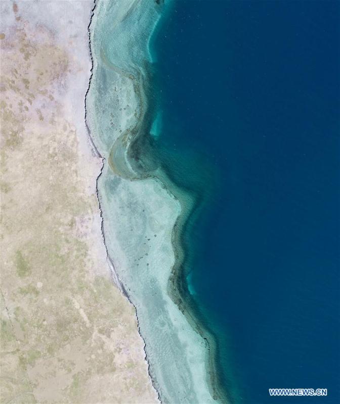 Aerial photo taken on May 27, 2018 shows the scenery of the Yamdrok Lake in Nagarze County of Shannan City, southwest China's Tibet Autonomous Region. (Xinhua/Jigme Dorgi)