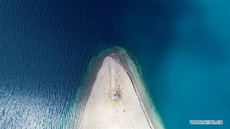 Aerial photo taken on May 29, 2018 shows the scenery of the Yamdrok Lake in Nagarze County of Shannan City, southwest China's Tibet Autonomous Region. (Xinhua/Jigme Dorgi)