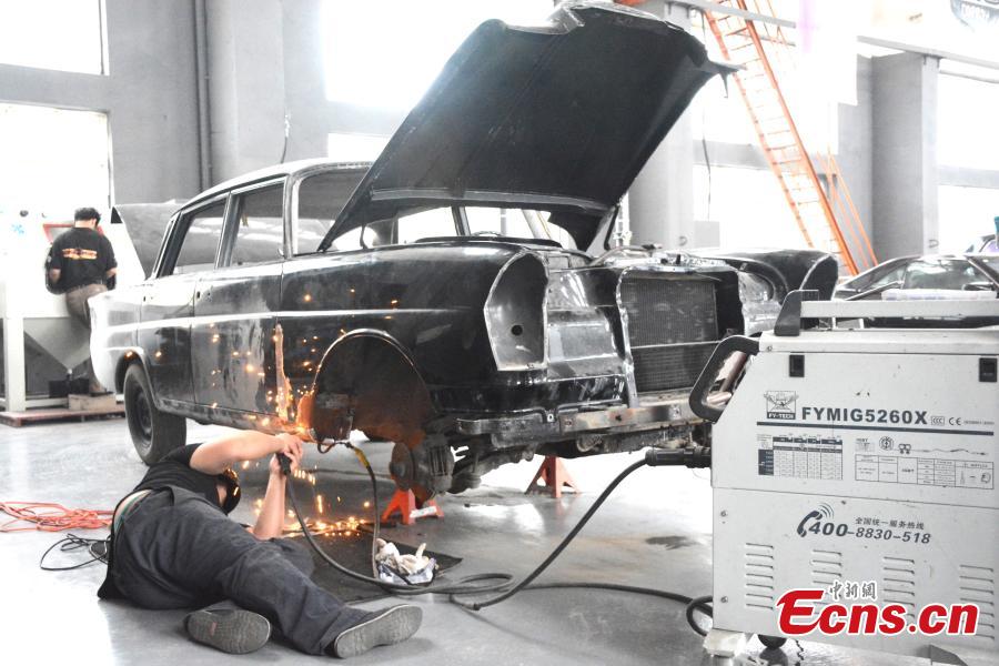 A technician repairs a 1959 Mercedes-Benz W111 car at Dalian Jingdian Auto Culture Center in Dalian City, Liaoning Province, June 26, 2018. The center has hundreds of classic cars under maintenance, including a car donated by Stalin to Mao Zedong and a 1932 Rolls-Royce 20/25 car. Center founder Han Yeguang said all the classic cars were either from foreign museums or private collectors, and the time taken to restore each vehicle ranged from six months to four years. (Photo: China News Service/Yang Yi)