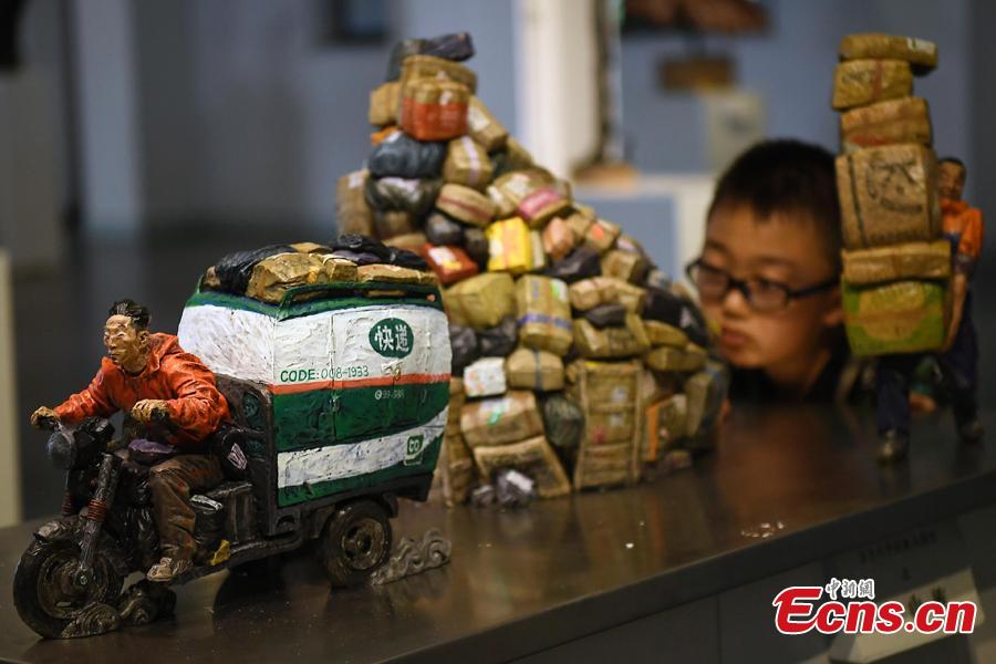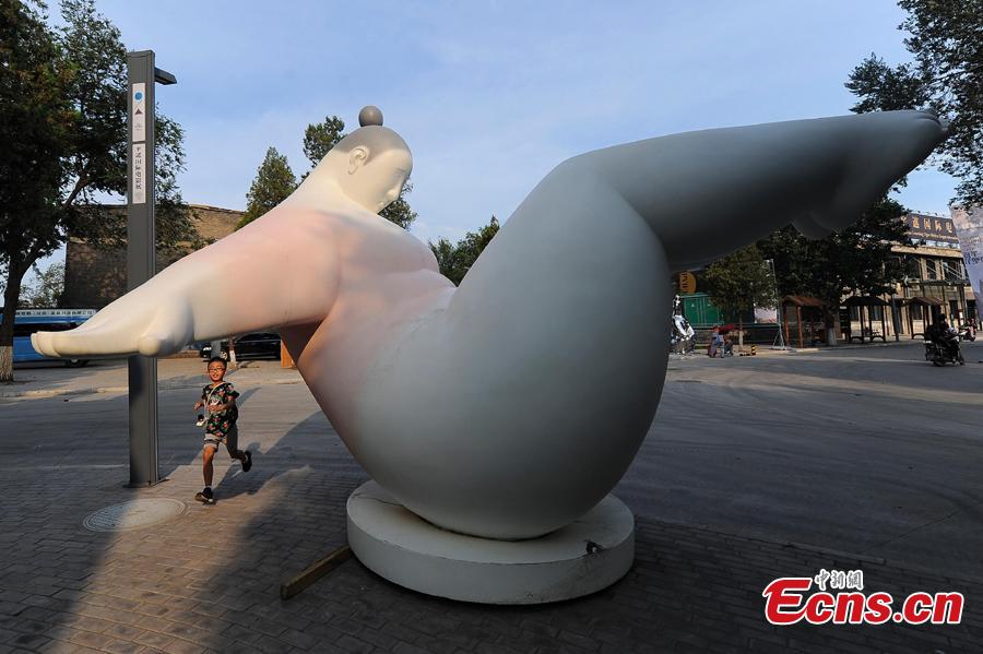 Photo taken on July 19, 2018 shows an international sculpture festival in Pingyao County, North China’s Shanxi Province. More than 40 artists brought their sculpture works to the festival in the ancient town.(Photo: China News Service/Wei Liang)