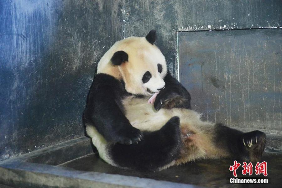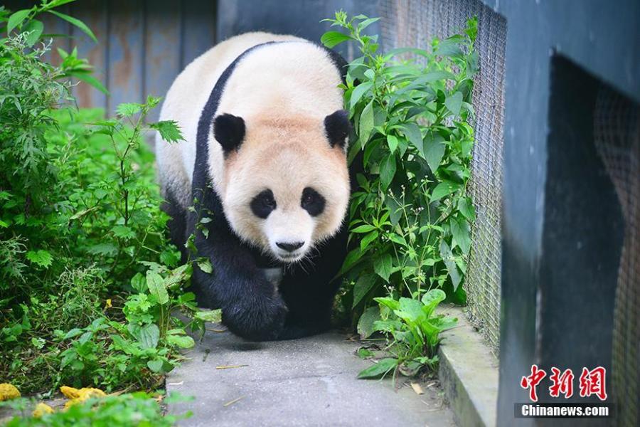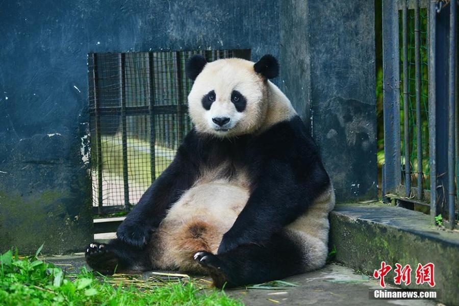 File photo of giant panda Cao Cao. Cao Cao gave birth to twins of mixed sex, with the male weighing 215 grams and the female 84 grams, on July 25. The mother panda is looking after the male cub herself, while the female one is now under the care of keepers. Cao Cao is the first captive panda to give birth to twins after mating with a wild panda. (Photo: China News Service/Li Chuanyou)