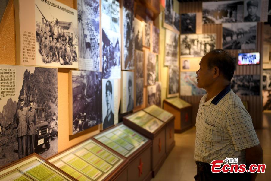 Niu Bentong looks at photos depicting the China-Vietnam war in Longzhou County, South China’s Guangxi Zhuang Autonomous Region, July 30, 2018. Niu participated in the China-Vietnam war and witnessed the death of many of his comrades-in-arms in front of him. In 1980, Niu chose to work in the cemetery, where 1,902 martyrs lie, and he continued to work there for 37 years until his retirement this year. He has helped correct information related to more than 400 martyrs and has also shared details online. In his spare time, Niu continues to help at the cemetery, saying it’s hard to forget the days of life and death spent alongside his fellow soldiers. (Photo: China News Service/Yu Jing)