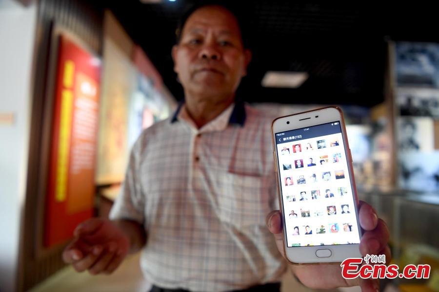 Niu Bentong shows a WeChat group for war veterans or the relatives of martyrs in Longzhou County, South China’s Guangxi Zhuang Autonomous Region, July 30, 2018. Niu participated in the China-Vietnam war and witnessed the death of many of his comrades-in-arms in front of him. In 1980, Niu chose to work in the cemetery, where 1,902 martyrs lie, and he continued to work there for 37 years until his retirement this year. He has helped correct information related to more than 400 martyrs and has also shared details online. In his spare time, Niu continues to help at the cemetery, saying it’s hard to forget the days of life and death spent alongside his fellow soldiers. (Photo: China News Service/Yu Jing)