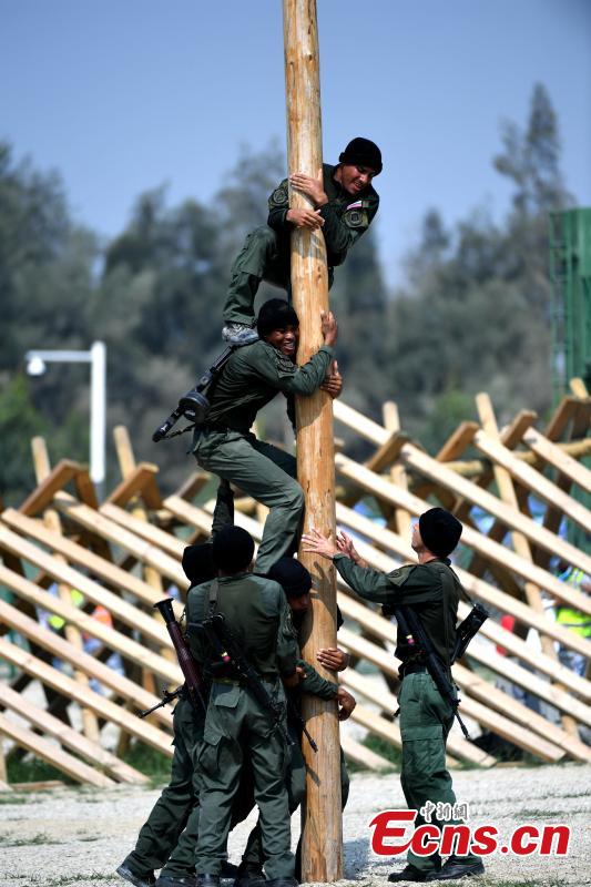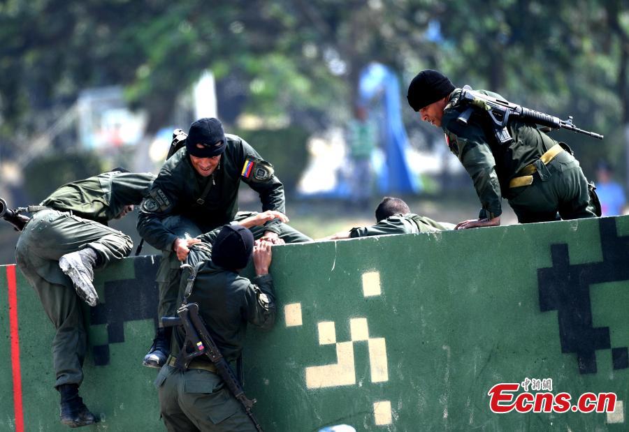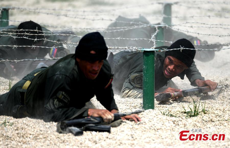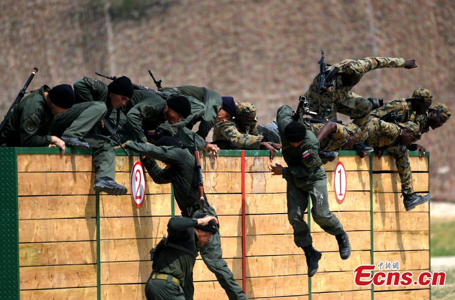 Venezuela soldiers participate in the "Seaborne Assault" contest, part of the International Army Games 2018, held in Quanzhou City, East China’s Fujian Province, July 30, 2018. Contestants from Iran, Russia, Sudan, Venezuela and China competed in the contest, which consisted of an obstacle course, a survival trail and a relay race. Among 13 teams, Chinese marine forces took the top three spots in the obstacle course. (Photo: China News Service/Wang Dongming)