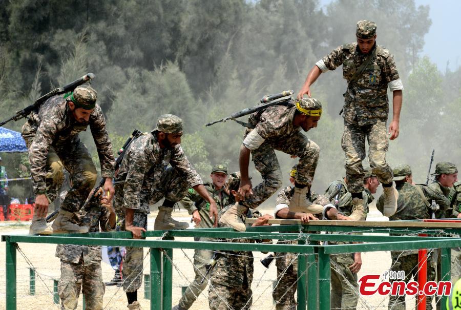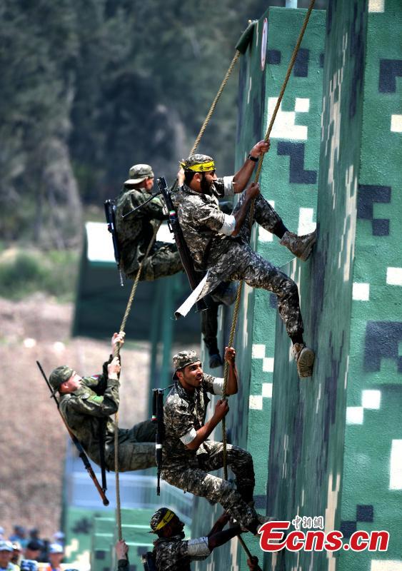Iranian soldiers participate in the "Seaborne Assault" contest, part of the International Army Games 2018, held in Quanzhou City, East China’s Fujian Province, July 30, 2018. Contestants from Iran, Russia, Sudan, Venezuela and China competed in the contest, which consisted of an obstacle course, a survival trail and a relay race. Among 13 teams, Chinese marine forces took the top three spots in the obstacle course. (Photo: China News Service/Wang Dongming)