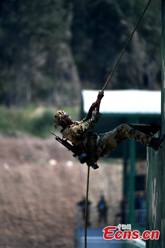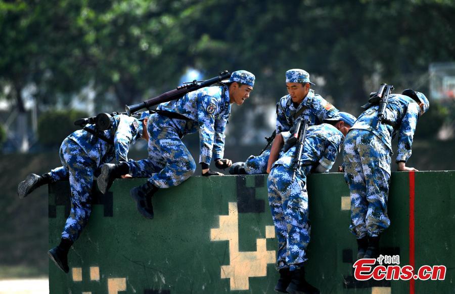 Chinese soldiers participate in the "Seaborne Assault" contest, part of the International Army Games 2018, held in Quanzhou City, East China’s Fujian Province, July 30, 2018. Contestants from Iran, Russia, Sudan, Venezuela and China competed in the contest, which consisted of an obstacle course, a survival trail and a relay race. Among 13 teams, Chinese marine forces took the top three spots in the obstacle course. (Photo: China News Service/Wang Dongming)