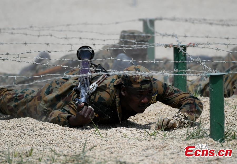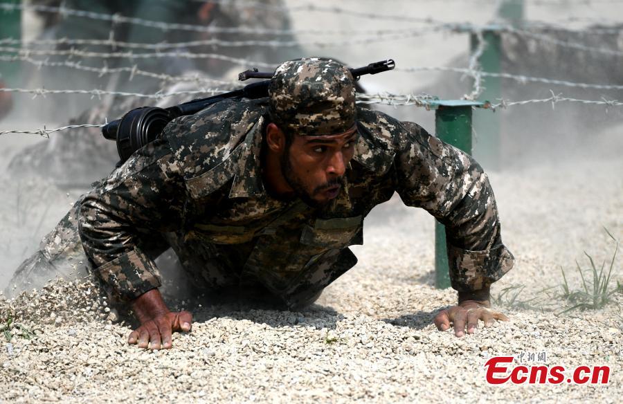 Sudanese soldiers participate in the "Seaborne Assault" contest, part of the International Army Games 2018, held in Quanzhou City, East China’s Fujian Province, July 30, 2018. Contestants from Iran, Russia, Sudan, Venezuela and China competed in the contest, which consisted of an obstacle course, a survival trail and a relay race. Among 13 teams, Chinese marine forces took the top three spots in the obstacle course. (Photo: China News Service/Wang Dongming)