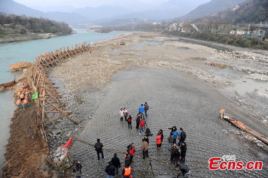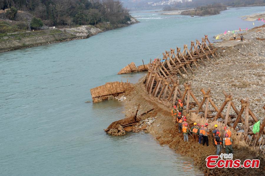 Renovation of the Dujiangyan irrigation system, major landmark in the development of water management and technology that is still discharging its functions. water conservation project in 2014. (Photo: China News Service/Zhang Lang)