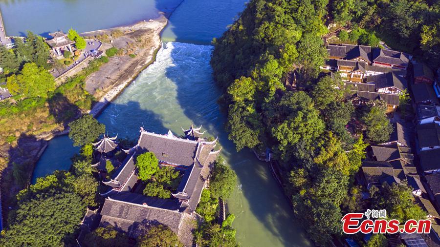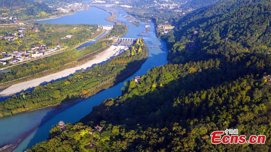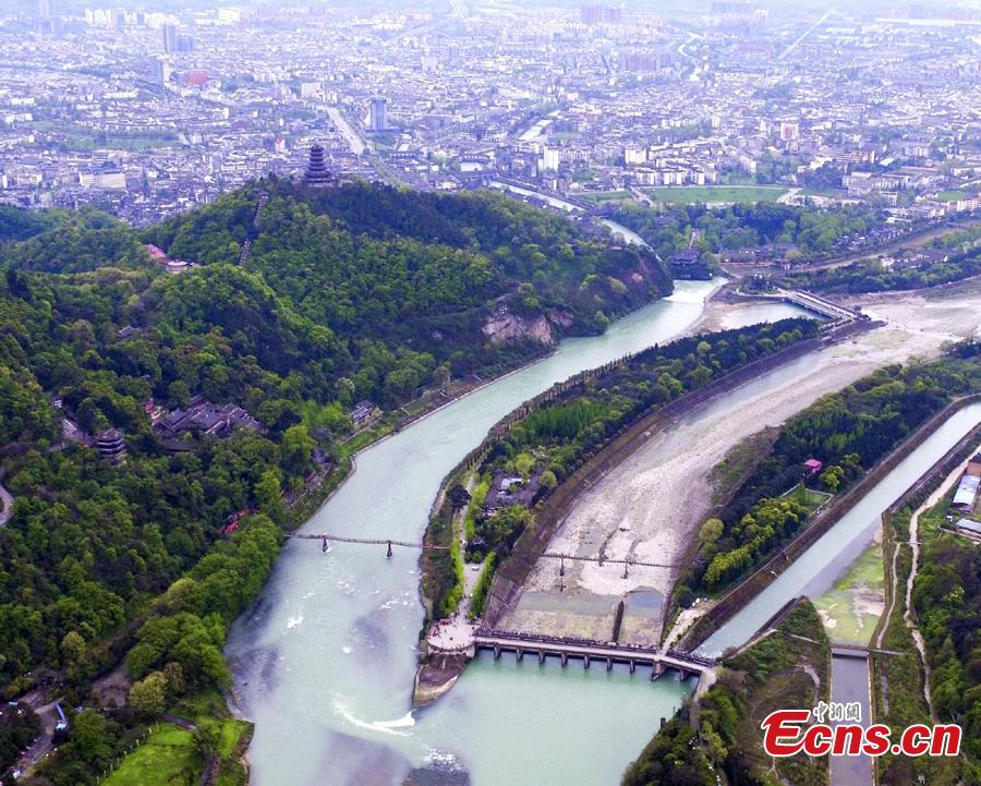File photo of Dujiangyan irrigation system, a major landmark in the development of water management and technology that is still discharging its functions. (Photo: China News Service/He Bo)