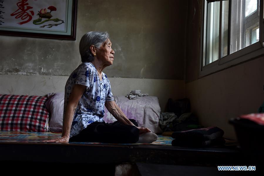 Hao Juxiang is seen at home in Quandian Village of Wuxiang County, north China's Shanxi Province, Aug. 3, 2016. Hao died on Aug. 16, 2016 at the age of 94. In April of 1939, Hao was captured by Japanese invaders and became a "comfort woman". About one month later, she was redeemed by her family. Women forced into sexual slavery by the Imperial Japanese Army before and during World War II were called "comfort women." Research shows some 400,000 women in Asia were forced to be "comfort women" for the Japanese army during World War II, nearly half of whom were Chinese. However, the Japanese government has refused to acknowledge legal responsibility for the "comfort women" issue so far. Reporters from Xinhua spent many years to look for the victims and recorded their current lives. (Xinhua/Zhan Yan)
