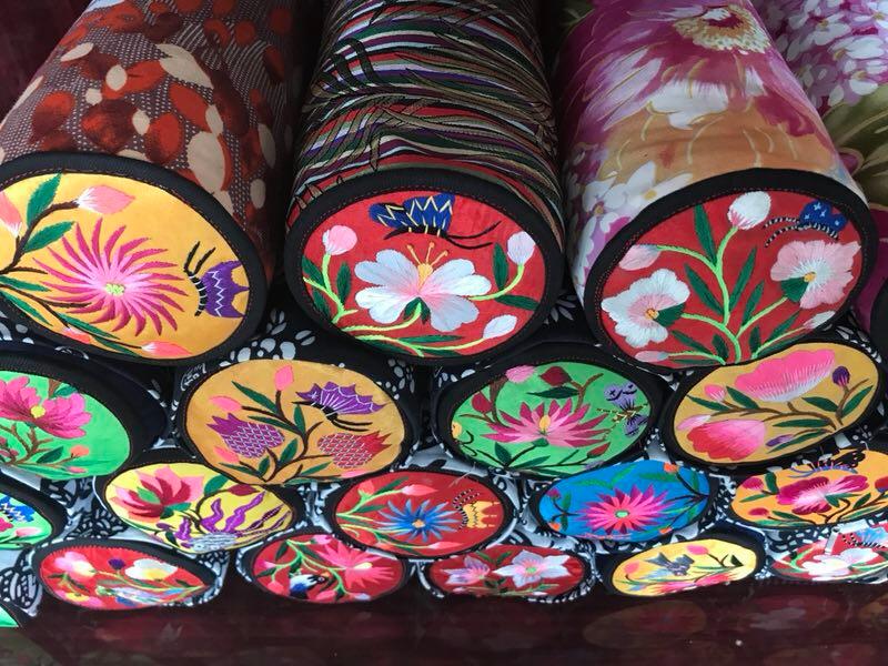 The women do the needlework, especially traditional embroidery techniques, to create the patterns on both sides of the pillow from generation to generation.