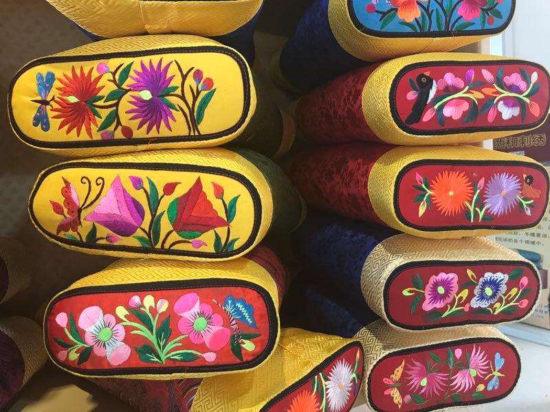 The embroidered pillows have become one of the popular tourist items in Longnan of Gansu Province. (Photo provided to chinadaily.com.cn)